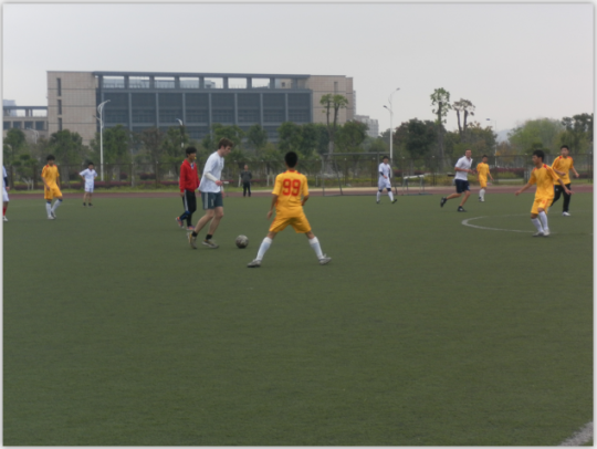 对电气学院的足球赛在一区足球场举行。虽然比赛当天的天气状况不太好,但是阵阵寒风也没有影响到队员们的热情。