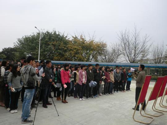 针对12级新生展开了一次消防演习。本次演习由党委副书记刘旺主持,在12级辅导员黄柑莲的指导下有序进行。