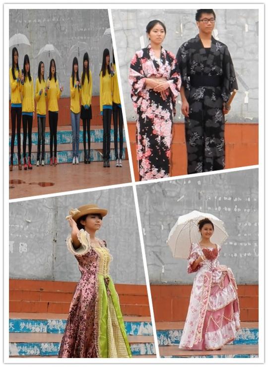 的同学们还展示了丰富多彩的异域风情表演“缤纷外语,魅力无限——外语文化舞台展示”。深沉婉转的德语歌曲,热情奔放的英文歌曲,轻松欢快的日语合唱,吸引大批同学纷纷驻足。最精彩的还要属日本剑道表演以及华美的异域风范走秀:孔武有力的飒爽英姿,巾帼不让须眉的从容魄力,温文尔雅的万千仪态,掀起了全场一次又一次的高潮。文化节活动于下午4时许顺利落幕。