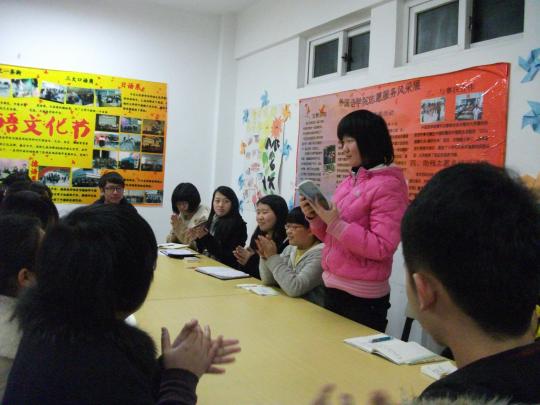 青年志愿者协会主办的学习雷锋精神座谈会在生活区13号楼5楼活动室顺利开展。本次座谈会由外院青年志愿者协会会长张冶主持,外院学生会主席黄玉洁、团委副书记郭馨以及各个学生代表出席此次座谈会。