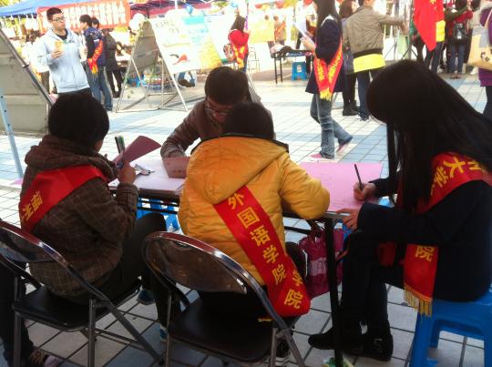 不同院系的青年志愿者相聚一区广场,在电影天堂
