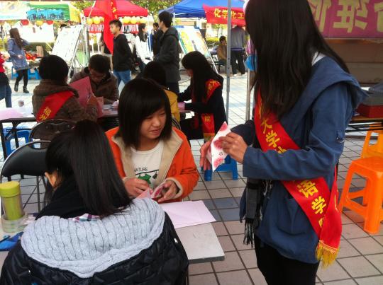 关爱农民工子女的系列活动紧紧围绕“心手相牵 助力成长”的主题,通过“‘七彩课堂 心手相牵’——七彩课堂教学系列成果展”、“‘心语心愿 助力成长’——温馨传递祝福”两项活动,展示了美岐小学兴趣小组课堂教学风采图片、学生笑脸图片、学生优秀手工制作作品、儿童画作品,令人印象深刻;而以新媒体手段及现场制作手工、手绘写祝福等方式表达对农民工子女的关爱吸引了不少路人驻足参与。活动现场气氛宽松融洽,志愿者们都尽自己最大的努力传递爱心。