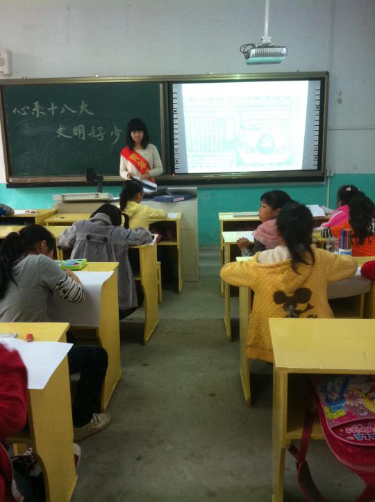 本次比赛以“心系十八大,文明好少年”为主题,是外国语小学青年志愿者协会支教活动的一个重要组成部分。在本次活动中,志愿者们分别来自青年志愿者协会与宣传部两个部门,并根据需要志愿者被安排在三至六四个不同的年级。在课堂上,志愿者们不厌其烦地回答小朋友们提出的各种问题。他们耐心细致地教小朋友们绘画,工作态度认真负责,俨然已经成为一个合格的支教志愿者。课堂上气氛热烈,低年级的小同学都十分活跃。