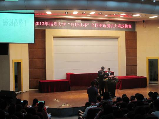 “外研社杯”英语演讲大赛圆满落下帷幕。本次英语演讲比赛,使一大批具有口语才华的同学得以展示自己和锻炼自己。它使同学们在享受比赛的同时,获得许多实用的英语学习方法,找到了提升自我能力的途径。此外,这次比赛还为学校学院选拔了一批优秀的外语人才,推动了我校外语教研建设,培养和发现一系列符合“十二五”规划纲要的高素质外语人才,为国家与社会的可持续发展做出了贡献。