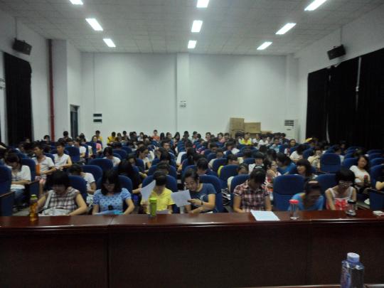 2012级新生在新生班主任的带领下,展开新生入学教育第四天的活动。第四天的活动包括专业学籍管理教育、选课教育、新生心理健康讲座三个内容。