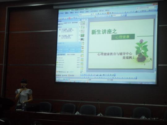 为了使新生们更好地适应大学生活,了解新生们的心理状况,晚上七点,新生心理健康讲座在外院会议室开展,心理健康教育与心理辅导中心黄瑞枫担任主讲人,老师首先向同学们描绘了现实中的大学,接着对大学生常见的心理问题进行了深刻的分析,并提出了解决这些心理问题的对策,最后老师针对如何顺利度过大学生活这个问题,向同学们提出了建议和要求,老师鼓励同学们积极争取机会,勇敢表现自己,为外语学院再创华丽的篇章而努力。