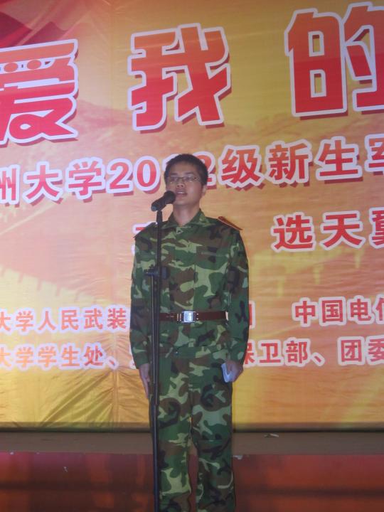 校团委主办,旨在为12级新生提供一个展示自我的平台,并动员所有新生以更饱满的姿态投身于军训中。各学院经过院赛选派出优秀的选手代表学院站上这个大舞台,代表全体福大学子表达对国防的伟大希冀及军训的敬佩之情。