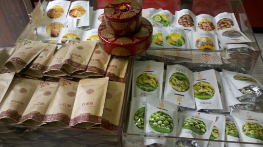 年,传承宫廷的精湛技艺,专营各式各样精美的糕点、蜜饯、干果等高端休闲茶食品。店内陈列着各式各样的茶配,光是看着就令人食欲大开,恨不得逐一品尝。老板的介绍到,茶配茶点有点餐酒搭配的意味,好的搭配除了能提升各自的滋味,更重要的是能收获两份的喜悦。体验过成功搭配餐酒的人,都对那种食物与酒在口腔中的完美融合有着莫名的激动和充满成就感,茶点配茶是同样的道理,都有一种让人能沉醉其中的魔力。老板还补充到,