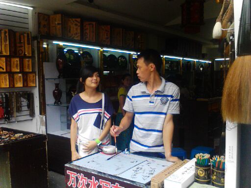 作为福州三宝之一的牛角梳,在南后街的商店里可谓畅销货。小分队先后参观了专卖牛角梳的“恒利牛角梳”店和“保锐牛角梳”店,仔细欣赏了店内造型各异的牛角梳,其精美的造型与适中的价格吸引了不少顾客前来选购。在与店长的攀谈中,小分队成员了解到,牛角梳的原料选择是有讲究的,牛角梳,顾名思义,是以牛角为原料,采用传统的工艺手工制作而成。牛角梳材料有水牛角、黄牛角、牦牛角,绵羊角,山羊角、螺丝羊角等。好的牛角梳手感温润厚实,牛角色泽圆润,手感好,不起静电。牛角梳不仅外观典雅耐看,更具有保健功能。每天用牛角梳头数次,可以起到按摩大脑头皮和头部神经,促进血液循环,放松紧张和疲劳情绪的作用,因此深受群众喜爱。在参观了多家牛角梳专卖店后,小组成语还发现了各个专卖店的共通之处,其一是店铺里都装饰着巨大的霸气的牛角,其二为牛角梳都被包装在奢华的礼品盒里,可见其作为礼品的受欢迎程度,其三则是牛角梳除了有寻常样式,一部分还被雕琢成或活泼的动物形象或精美的图案,趣味十足。