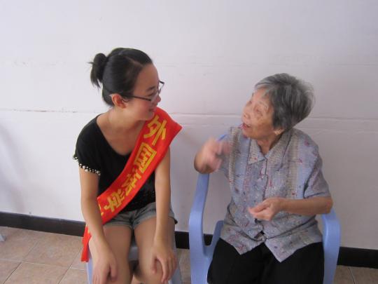 此次敬老院之行志愿者们别出心裁地决定事先了解了老人们儿女的电话号码。在活动当天,志愿者们纷纷掏出手机让老人们和自己的儿孙们聊聊天。当院子里这一块那一簇地响起手机拨号声,当电话那头传来久违的儿女们嘘寒问暖的问候,老人们布满皱纹的脸颊犹如绣上一朵鲜花般灿烂,不停地让儿女们放心自己这的生活一切安好。志愿者们则静静地站在一旁,听着老人们略微激动的声音,分享着老人们的幸福和快乐。一通通的温馨而又温暖的对话之后,志愿者们就开始活动起来。有的牵着老奶奶的手在屋子里坐下聊天,有的陪着老爷爷在活动室里下棋,直到晚餐时间,同学们搀扶着老爷爷、老奶奶们走进食堂,一一和老人们道别。老人们一声声的“谢谢,有空再来”让志愿者们倍感不舍与感动,在一阵挥手里,志愿者们才依依不舍地离开了敬老院。