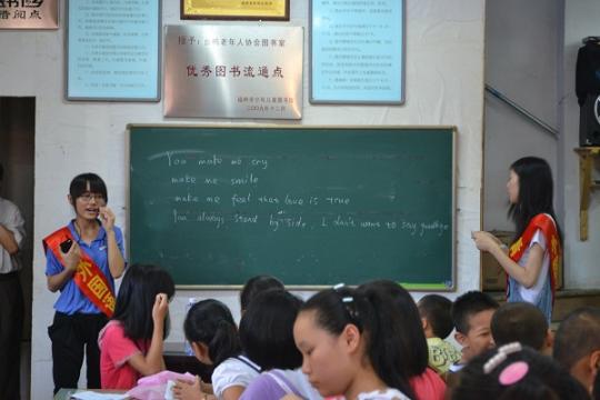 举行的农家书屋之“大手拉小手,快乐学英语”活动进行到了最后一天。志愿者们一如既往早早地来到了台屿村农家书屋的活动地点,每个人的脸上都洋溢着温暖的笑容。