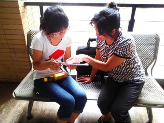 日语系教师,曾经还担任过贸易、翻译、经济师、中学一级教师。教学经验丰富的她,热情招待了前来采访的两名同学,并逐一为他们解答对于外语专业就业的疑惑。