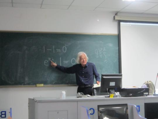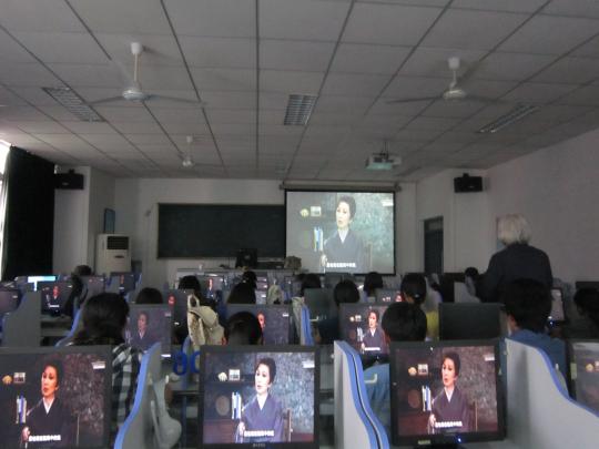 首先教授让大家观看电影片段,并在观看后结合原著向大家简单介绍影片内容及女主人公的背景。电影名为《博士爱的方程式》,讲诉了因一次意外而记忆只能保留80分钟的日本博士的爱情故事。博士热爱数字,却不善于与人交往。他与嫂子同住,家里请了一个未婚却带10岁儿子的女管家。电影描述了他与女管家由相识到相知的情感历程。接着教授通过两个方程式向大家分析了数字0的美妙。他说道,方程式“1-1=0”表示一只在树上的鸟儿飞走了,一切又恢复了平静。教授还表示,从该电影可以看出当下日本年轻人“追求永远年轻自由,不愿结婚”的结婚观。同时老师也谈到学习不能只是依赖课本和课堂,应该多利用课外的学习资源,而在看电影时要关注影片语言,挖掘其中的奥妙。