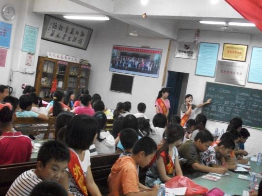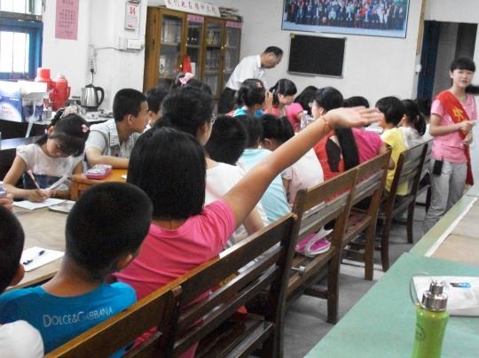 从九点到十一点,志愿者和书屋的学生在课堂中互动,在互动中学习。虽然只有两个小时,但他们收获的绝不仅仅是英语知识。对于志愿者来说,他们收获的是志愿服务助人为乐的高尚精神;对于学生们来说,他们收获的是对社会的感恩和一颗阳光的心。农家书屋之行,还将走的更远,外院支教志愿活动,也将在持续的奉献中缔造辉煌。