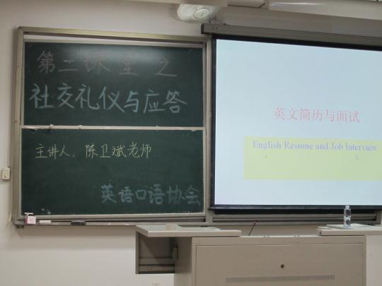英语口语协会承办的第二课堂之社交礼仪与应答在文1-304顺利举行。主讲人为电影天堂