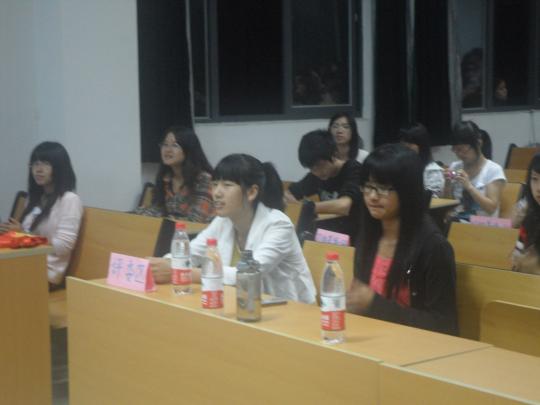 19时许,大会正式开始。主持人致开场白后,郑伟艳同学首先上台发言。她的发言内容是入党积极分子们都热切关心的话题——入党流程。通过PPT讲解,郑伟艳同学用简洁明了的话语介绍入党流程的每一个环节,并热心地提醒在场同学们应注意哪些细节。随后,与大家分享经验的是卢丛珊同学。作为党员典范,她向同学们讲述她在福大三年的奋斗经历。她侃侃而谈,风趣幽默。诙谐的发言常常引得台下同学们爆发阵阵笑声,现场气氛十分活跃。同时她丰富的获奖经历也让同学们发出由衷的钦佩。最后登台的是09级德语系的林阿香同学,她代为介绍了同班同学刘晓柳的工作经历,为同学们展示了又一个性鲜明、杰出的党员形象。