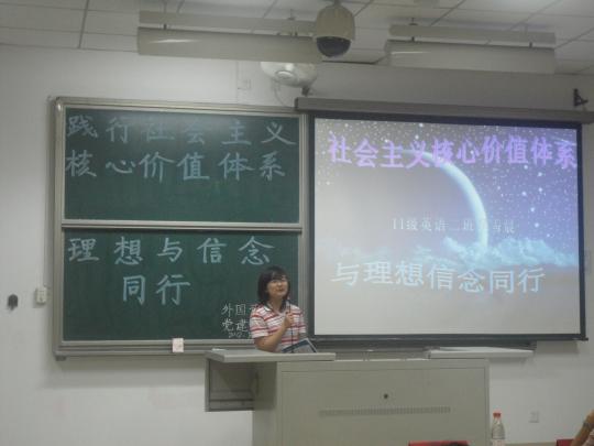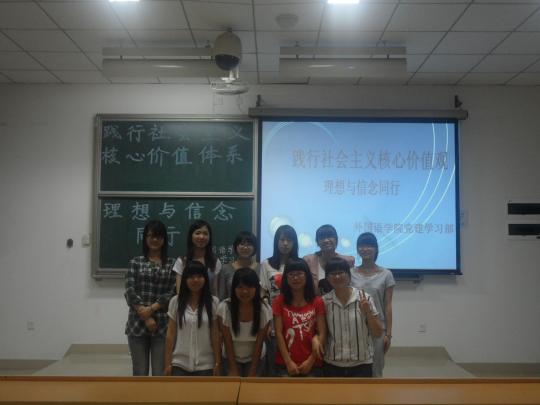 党建学习部主办。大会有请党建部“社会主义核心价值体系”征文大赛六名获奖同学上台进行以“社会主义核心价值体系”为主题的PPT解说交流,参加大会的还有电影天堂