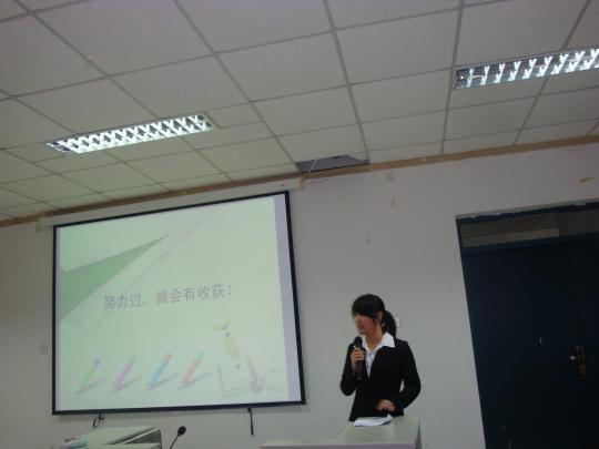 首先,刘文婷辅导员向大家表示学院方面对考研留学工作的支持,她还结合ppt向大家展示近几年考研、留学的情况,并表示学院在这方面为考研、留学的学生提供的设施。接着,主持人邀请三位优秀大四学生,分别对考研的有关事项进行详细的讲解。