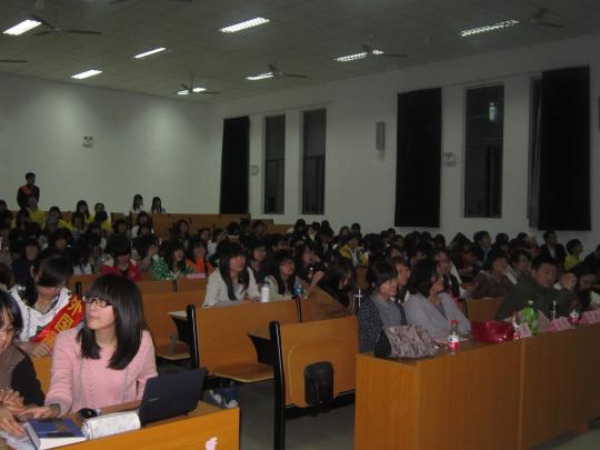 晚上七时许,活动正式开始。每个班级派出一名或是两名主讲人,对自己班级的基本情况、特点、开展的活动以及获奖情况等进行简短的介绍。各个班级展示形式各异,其中10级日语二班以QQ空间的形式展开,条理清晰,独具特色。09级英语三班的同学在展示结束后还在黑板上留下了班级主页的地址,令在场的人印象颇为深刻。除此之外,许多班级都已经开设班级微博,在增加同学间互动的同时,也为班级活动增添了一份色彩。从始至终,现场的观众都在各个异彩纷呈的展示的感染下,为自己的班级高声呐喊,加油助威。现场气氛热烈,欢笑声不断。