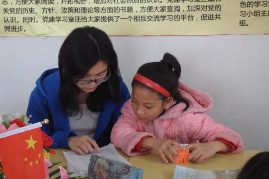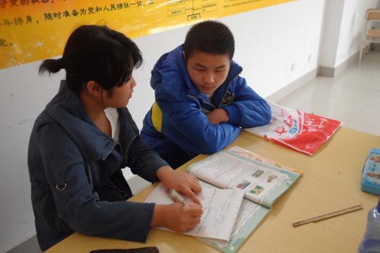 小学的学习内容虽然简单却很重要,是孩子们未来学习的基础,只有把基础打扎实,及时查缺补漏,今后的学习才能事半功倍。初中的内容相比小学则稍显复杂,基于此,志愿者们根据各个孩子们不同的学习状况,以认真负责的态度对待补习。在补习现场,一位“老师”负责一个孩子,他们先给孩子们梳理本周的知识要点与重点,加深孩子们对这周所学新知识的理解。接着是孩子们完成作业的时间,期间志愿者们不时对孩子们的作业进行答疑解惑。每当看到自己的“学生”露出疑惑不解的眼神时,“老师”们便马上对存在的问题进行解答,直至“学生”真正理解才作罢。在这一来一回的对话中,“师生”间的感情逐渐升温。
