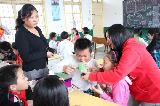 赛扶团队联合利华专案项目组在美岐小学开展了“变废为宝”环保推广活动,与小学四年级的学生在享受动手的乐趣中同时学习环保。