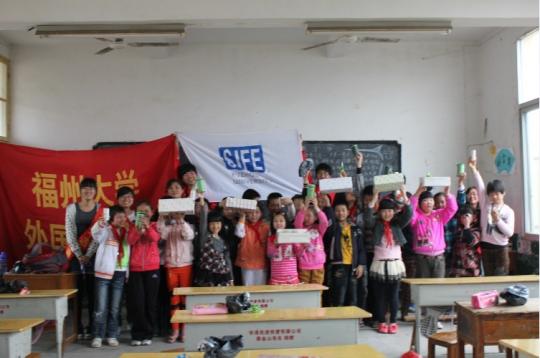 第一个环节,他们改造事先准备好的旧物。首先,他们将学生分为若干组,发放活动过程所需的材料用具。接着,在志愿者及赛扶组员的悉心指导下,学生们学会了用卫生纸芯做笔筒、旧薯片桶做邮筒信箱存钱罐、鞋盒制作收纳盒。那些旧物在那些小学生的手里变成各种各样的工艺品,虽然不够精致,却装载了他们满满的喜悦和满足。接着,他们对能够成功改造旧物的学生进行奖励,并赠送由志愿者制作好的鞋套并教授予正确的鞋套使用方式,最后,志愿者及项目组的组员与学生们一起拍照留念,本次活动在一片欢乐声中结束。