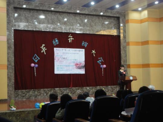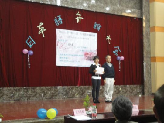 09级学生刘倩秀的演讲表现尤为出色,不论是她圆润的发音和流畅的速度,还是演讲里简洁易懂的内容和以小见大的事例都征服了评委与观众。