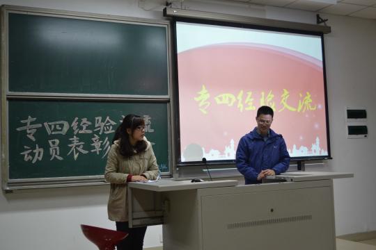 新学期来了,专四还远吗?专四是英语系大二学生即将面临的大考验,为了帮助同学摆正心态,从容应对专四考试,10级英语三班于2月21日晚7点在文1-305举行专四经验交流表彰动员大会,旨在通过,经验交流、学业表彰、60日誓师、倒计时牌悬挂等多形式,进行全方位的动员,让班级同学的专四备考更具目的性和针对性。