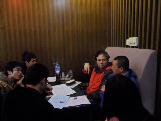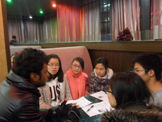 英语口语协会主办、机械工程及自动化学院10级机制5班承办的英语角活动在图书馆读书生活吧如期举行。Larry、Paul等外教到场与同学们共享英语的乐趣。