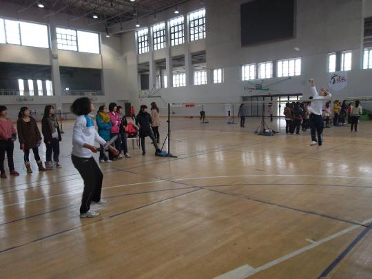 首先进行的是年级赛,各班级队伍按抽签结果分为2组分别进行循环赛,每组3支队伍。参赛者各个精神抖擞,从热身到进入比赛过程都积极投入,尽自己最大的努力发挥球技,沉着应对对手的挑战。场边的拉拉队不时传来“好球!”的喝彩声,比赛气氛浓烈。第一轮比赛虽然有的队伍被淘汰了,但仍在球场兴致勃勃地观看其他队伍的比赛。