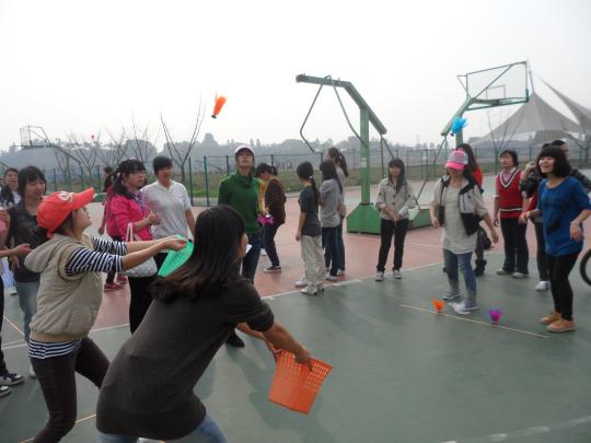 这次活动共分为2个环节:宿舍赛和班级赛,分别于上、下午进行。上午9时,在负责人宣布相关游戏规则后,宿舍赛在篮球场正式举行。双人跳绳、踢毽子和运动投篮三个项目在篮球场不同场地同时进行,由体育部部员担任裁判做好计时工作。场上,选手们精准的投篮、默契的配合,时不时引起同学们阵阵叫好声。场边,等候比赛的选手紧张地进行着热身运动,他们相互打气,商量对策。