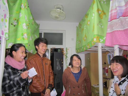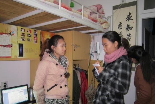 学生会主席李晓珊同学,副主席于佳明同学以及体育部部长汤丽霞同学于12月12日和13日到各个宿舍走访参赛运动员们。