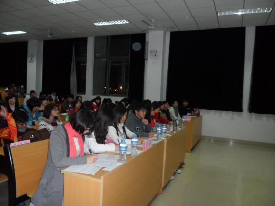 团委副书记陆婉莉同学以及陈小珠、卢丛珊、赖庆星、林宝惠、刘倩秀五位学生党员作为交流会的评委。