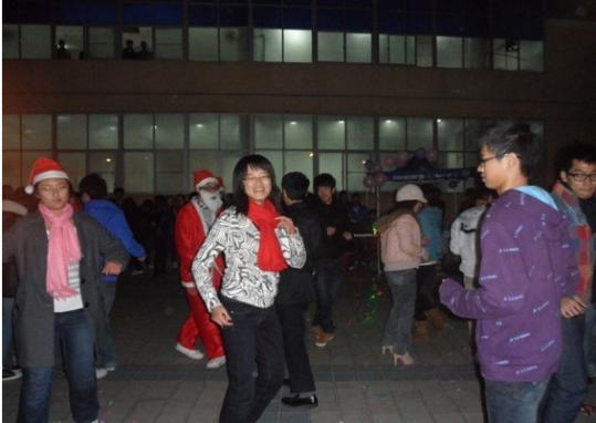 文化部、德国印象协会携手飞扬舞协会联合举办“以舞会友,共度圣诞”大型舞会。舞会于24日晚上19时在一区青春广场激情上演,现场吸引众多同学前来观看。