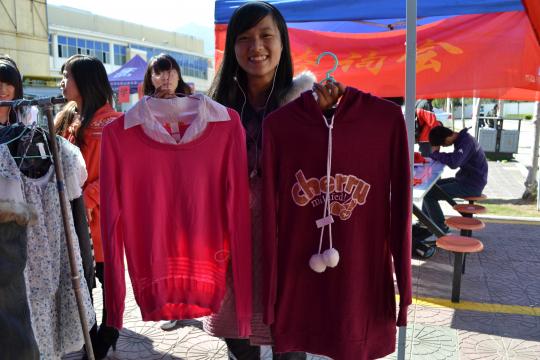 的同学们早早来到摊点,向前来询问商品的同学进行耐心的介绍。 摊子上摆放的商品有二手衣物,文具,书籍,小饰品等。而这些物品都是志愿者们在一个个寒冷的晚上,走遍每一座宿舍楼所换来的成果。当问及感想,电影天堂
