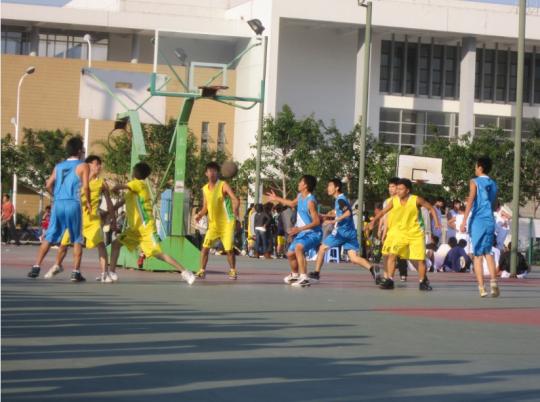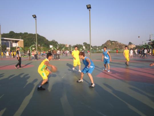 篮球队与环境与资源学院篮球队在三区风雨操场进行激烈的篮球比赛。