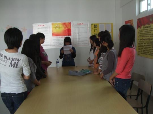 最后,由唐艳同学进行活动总结。同学们通过这次的活动不仅对当代的大学生应有的精神风貌有了更深刻的理解,同时还对自身有了更加深入的了解。同学们通过学习更加客观地看待自己与他人,并制定出具体计划,真正做到将理论付诸于实践,从而使进一步提高思想道德素质,努力学习科学文化知识,立志成才、奉献社会,努力成为社会主义事业合格建设者和可靠接班人,为建设海西和创业型东南强校作出应有的贡献。