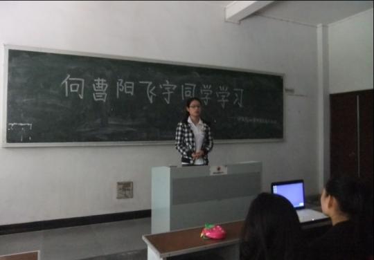 2001级研究生在子兴楼11教室举行了以“向曹阳飞宇同学学习”为主题的团日活动,宣传曹阳飞宇同学带病父上大学的先进事迹,学习他孝老爱亲、知恩感恩、弘扬践行了传统美德;学习他面对逆境、自强自立、勇于承担责任的意志品格;学习他富有理想、锲而不舍、立志成才的奋斗精神;学习他不畏困苦、勤劳俭朴、乐于奉献的优秀品德。在团支书的主持下,大家积极发言,表达了自己的观点,会议气氛十分融洽、活跃。