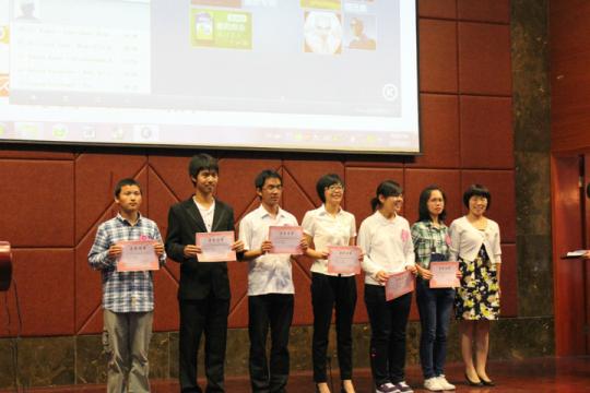 的吴雪晨同学、彭莉莎同学亦以其标准流利的发音、声情并茂的演绎分别摘得了第二和第三名的好成绩。林芳辉同学亦获得了优秀奖。在此对她们表示深切的祝贺。比赛最后,外教Larry对此各选手做了点评,现场嘉宾为获奖者颁奖。