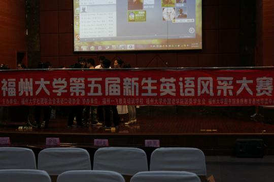 团委学生会主办,福州一飞教育培训学校及图书馆素质教育基地导读中心协助举办。英语教师胡昊、郑晓岚、余艳及外教Larry担任评委,各学院辅导员作为嘉宾莅临指导。来自17个各个学院的12名选手参加了本次比赛.
