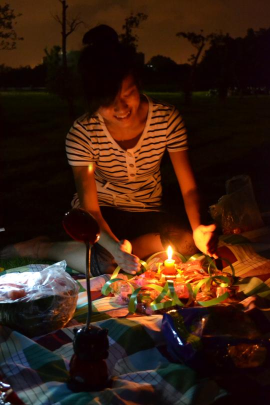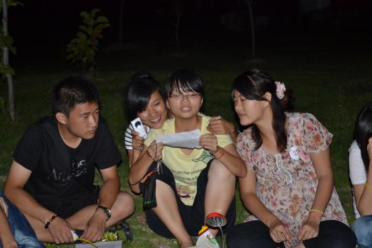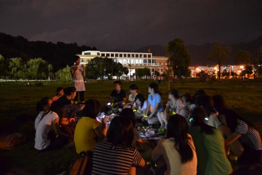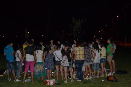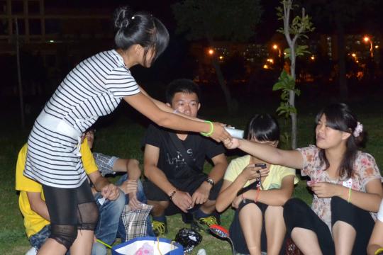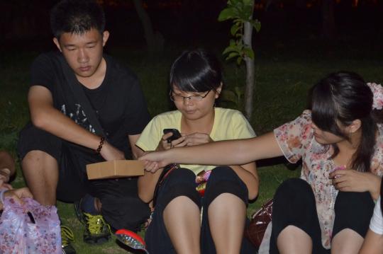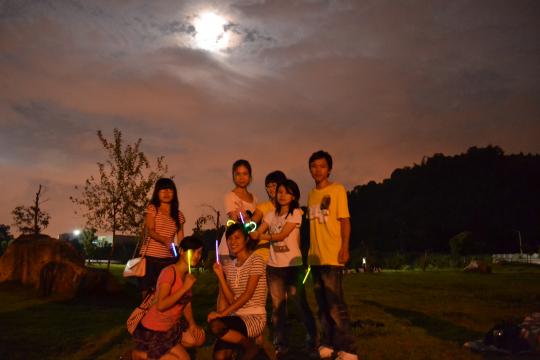 晚八时整,同学们准时到达聚会地点,开拓林。人手一根荧光棒,在朦胧夜色的衬托下,五颜六色、流光溢彩,煞是好看。随着晚会主持人的招呼声,聚会就正式开始了。
