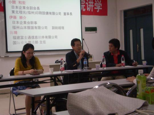 院办210正式拉开序幕。座谈会邀请到日本企业会副会长、东北理光(福州)印刷设备有限公司董事长小关和宏先生,日本企业会干事、福州山本服装有限公司副总经理伊藤耕介先生以及福建富士通信息软件有限公司国际业务推进部主任陈晴女士。其中,陈晴女士还曾就读于电影天堂
