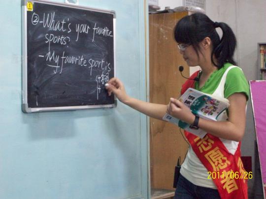 今天的课程既要求与上次课程内容相衔接,又必须为下次课程做好准备,是此次支教活动中承上启下的重要一环。志愿者们以支教教案为基础,用饱满的激情,积极的姿态讲活了课堂。林吴缘和冯丽慧两位主讲人为孩子们讲解了主要的课程内容,包括五年级Unit4、Unit5的复习以及教授六年级上学期Unit2英语课文,整个讲解过程还伴有生动有趣的游戏,吸引了孩子们的注意力。讲解之后,志愿者们与孩子们一起学唱英文歌曲 You are my sunshine,整个课堂气氛活跃,欢笑声不绝于耳,真正达到了快乐学英语的目的。11时授课结束,志愿者们给予了孩子们真挚的鼓励并寄予了热切的希冀。
