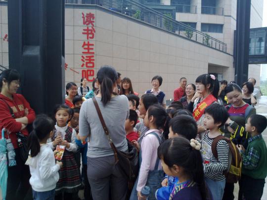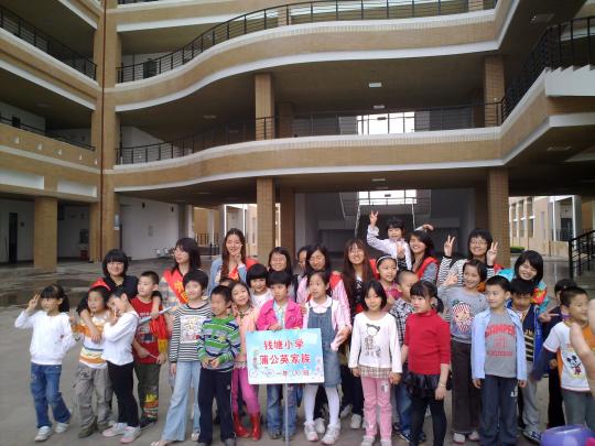 10级日语一班志愿者组织,钱塘小学一年9班同学和家长共同参与了活动。