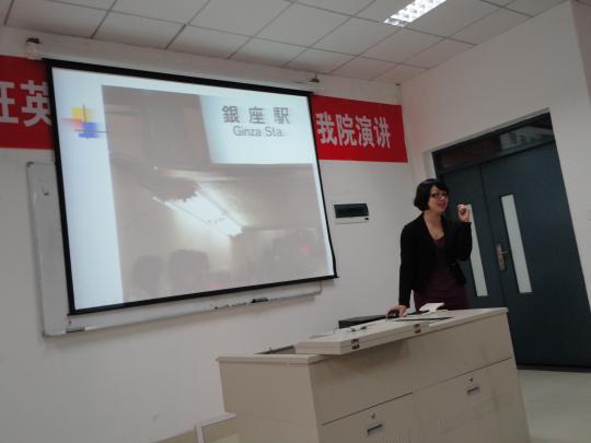 活动伊始,樱花日协的部员陈慧娴对樱花日协和这次活动做了简略的解释总结,并结合图片让学员对樱花日协和第二课堂有了更进一步的认识。短暂的介绍之后,这次第二课堂的内容正式开始,日语系的教师何美玲担任此次课堂的主讲人。何美玲老师首先从发生在当下的日本大地震说起,在悼念日本遇难群众的同时,展示了许多日本人遇难不慌井井有条的图片,引起学员对于日本礼仪重要性的思考,并由此引出对日本文化礼仪的介绍。