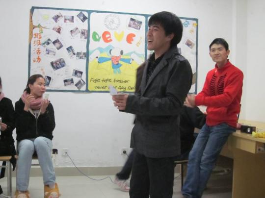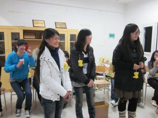 级英语三班的同学又分别进行了“比划猜成语”和“水杯接力”等几项游戏。在欢声笑语中,不知不觉活动已接近尾声,男生们再次唱响“月亮代表我的心”,为本次活动画上圆满的句点!