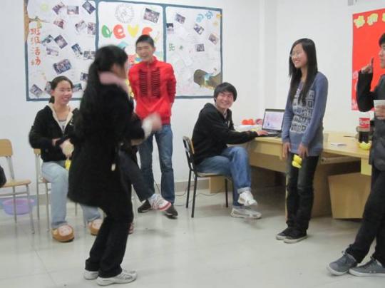 活动以“抢椅子”游戏拉开序幕,同学们积极参与,现场掌声不断,活动渐入佳境。紧接而来的山寨版相亲节目——“非诚勿扰”,将同学们引入活动的高潮,
