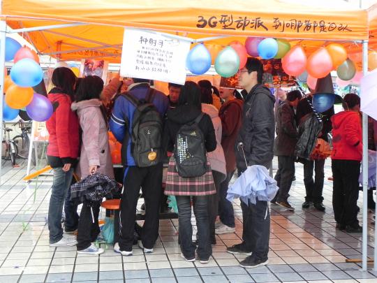 的同学已经忙碌于帐篷的搭建、展板的摆设和各种活动道具的布置。上午9时许,外语文化一条街活动正式敲响了开幕的锣鼓。随着活动的进行,越来越多的学生涌入帐篷中,一同分享这份别具特色的喜悦。中午时分,到处都可见熙熙攘攘的人群活跃在各式各样的小游戏和活动中。虽然天空持续地落着小雨,却丝毫不减大家参与的热情。