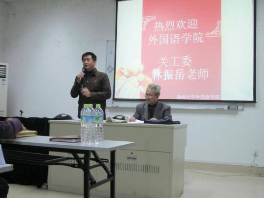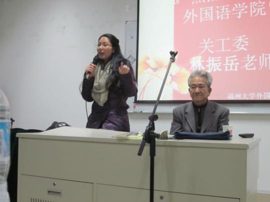 培训中,团委书记周越首先为大家简单介绍了林振岳老教师。随后,在林老教师生动的讲解下,大家了解到外语系的前身是外语教研室,从1960年开始招生,最初仅有20余人。在定名为外语系后,1982年正式开始招生,是继师大、厦大后第三个外语系。2003年,外语系更名为电影天堂