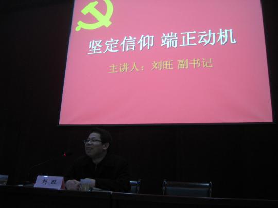 党委副书记刘旺以讲座的形式对学员们进行了第一讲,讲题为“坚定信仰,端正动机”。课堂上,刘旺副书记提出了坚定的共产主义信仰是每个共产党员的基本要求,端正的入党动机是建立在坚定的共产主义信仰基础之上的,为共产主义理想奋斗,全心全意为人民服务是唯一正确的入党动机。刘旺副书记围绕着“坚定信仰,端正动机”的主题,举出了许多生动的事例,极大地激发了学员们的学习热情。这次讲座让学员们知道了如何成为一个合格的党员,大大地增强了学员们的入党积极性。
